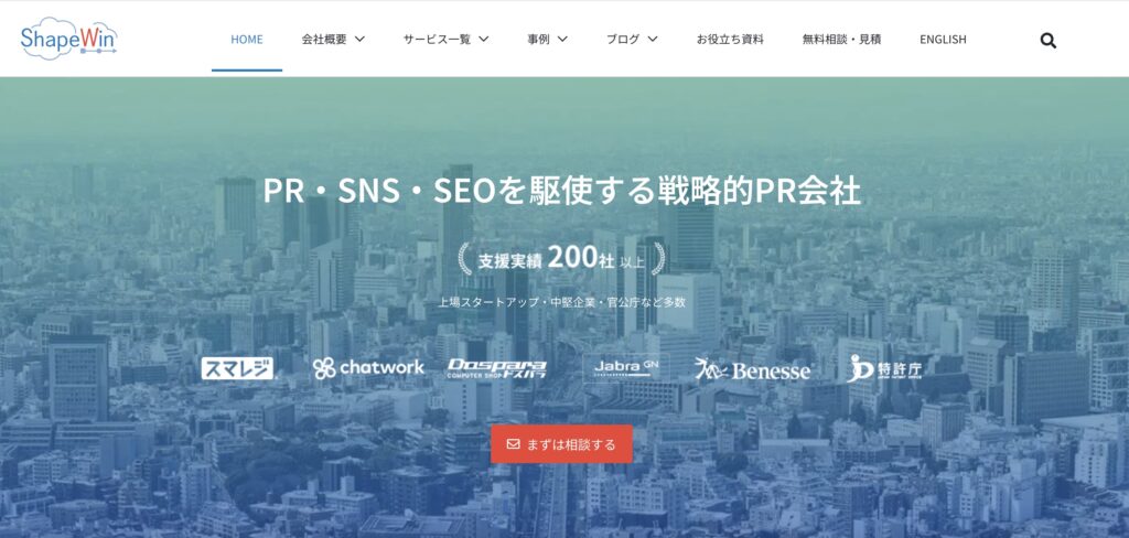 シェイプウィン株式会社は、PR・SNS・SEOを統合し、戦略設計から実行までを一気通貫で支援する戦略PR会社です。国内大手企業から政府関係機関、海外スタートアップまで、多様なクライアントの広報・PR活動を支援しています。